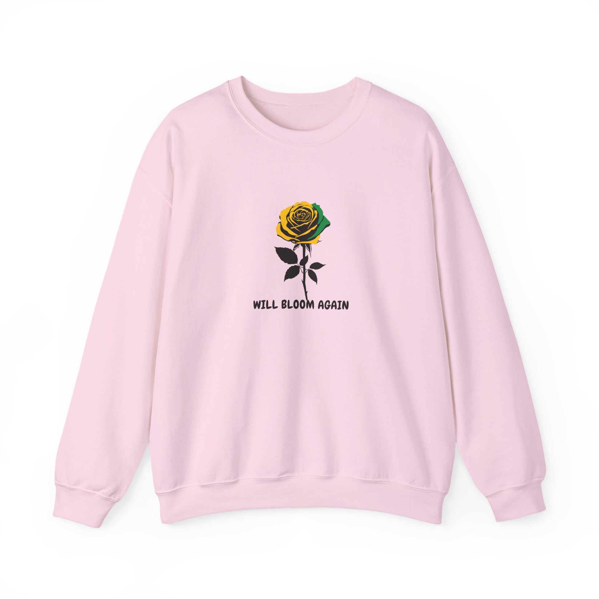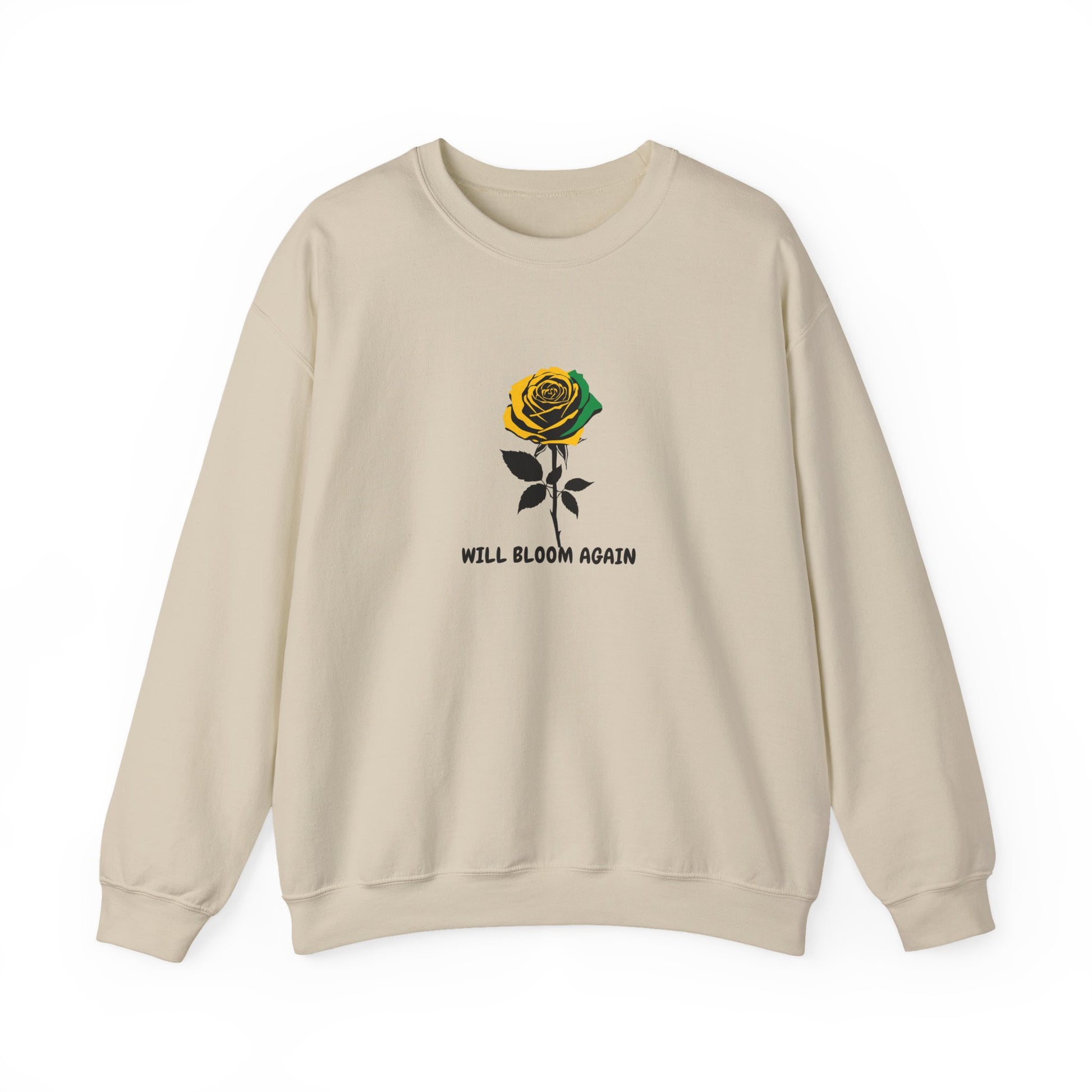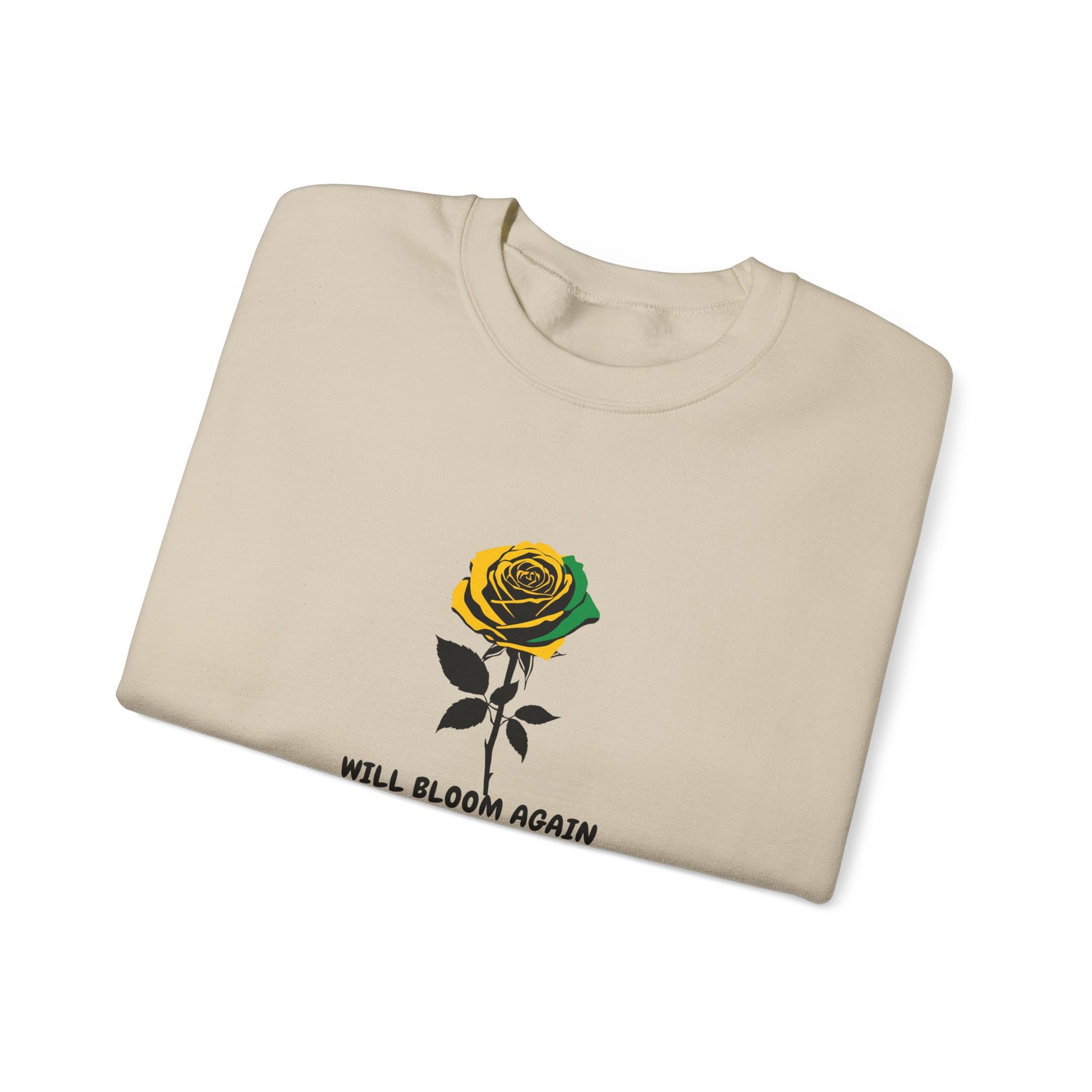 Soft, comforting, and quietly hopeful — this crewneck wraps you in warmth while carrying a small, resilient message. A single hand-drawn rose in muted gold and green sits over subtly distressed stems, with the words “Will Bloom Again” beneath. It feels like a favorite sweater pulled on after a long day: familiar, steady, reassuring. Wear it when you need a gentle reminder that growth comes in its own time. The clean white canvas keeps the artwork front-and-center, while the roomy classic fit and soft midweight fabric make it an easy go-to for slow mornings, evening walks, or cozying up with friends.