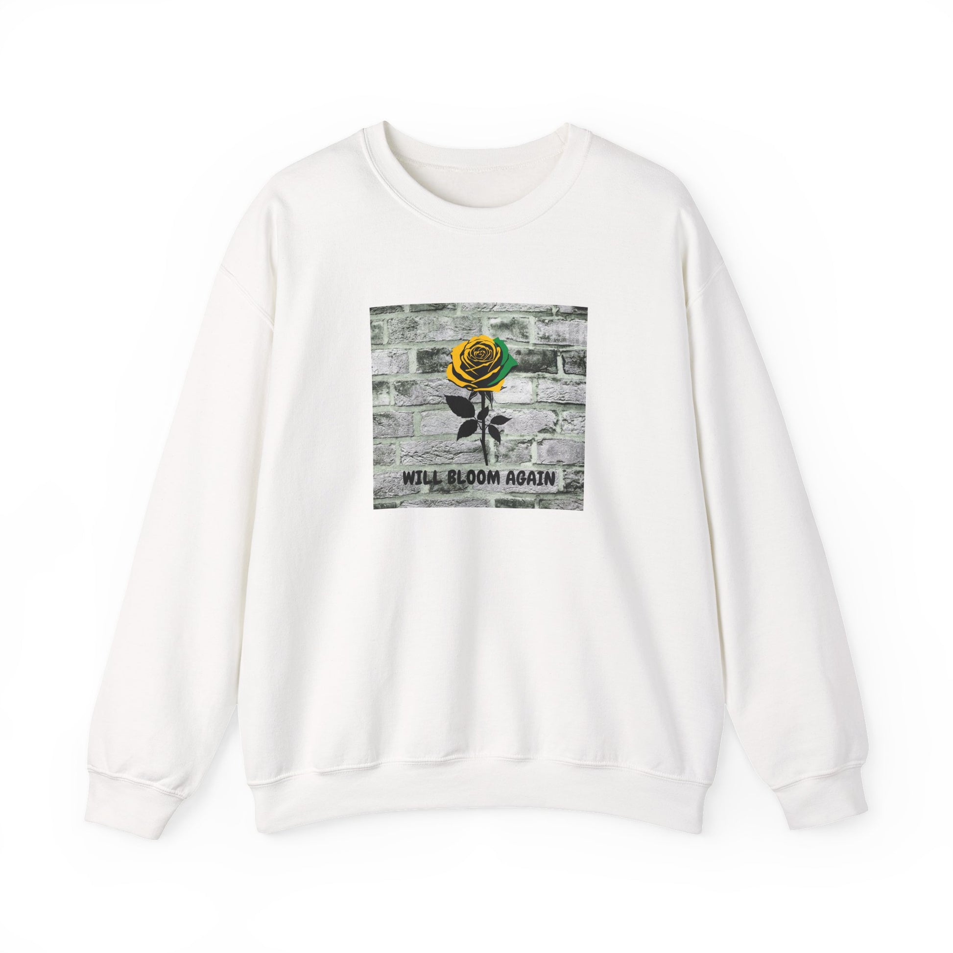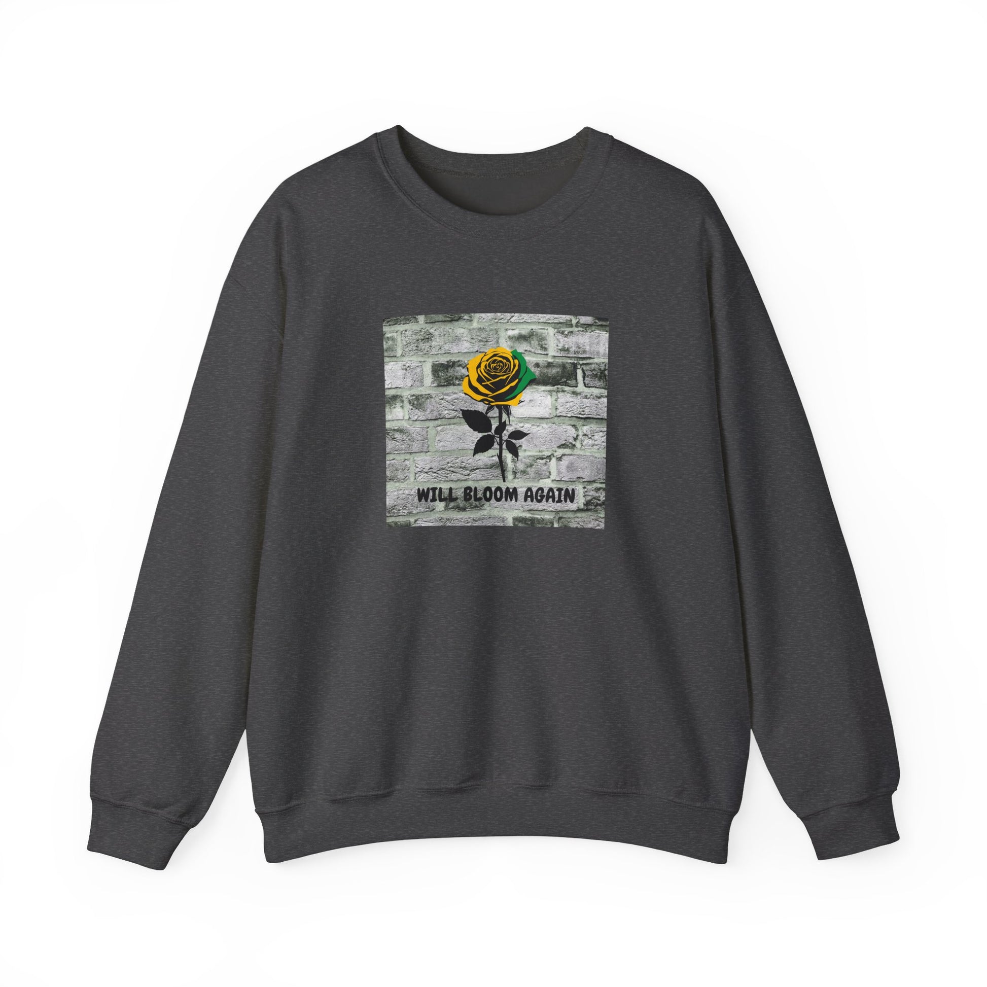 Soft, roomy, and quietly brave — this crewneck sweatshirt carries a single image that speaks louder than words: a black, green and gold rose, colors of Jamaica, growing from a weathered brick wall with the caption “WILL BLOOM AGAIN.” Wear it on slow mornings when you need a steadying reminder, or layer it for chilly evenings by the fire. The medium-heavy cotton-poly blend settles in like an old friend: warm, durable, and gentle against the skin. The embroidered-capable layout keeps the artwork crisp on the chest, while the classic fit and ribbed collar hold their shape through repeat wears. This sweatshirt feels like a small act of resilience you can wear anywhere — city walks, low-key gatherings, or days you’re building back up.