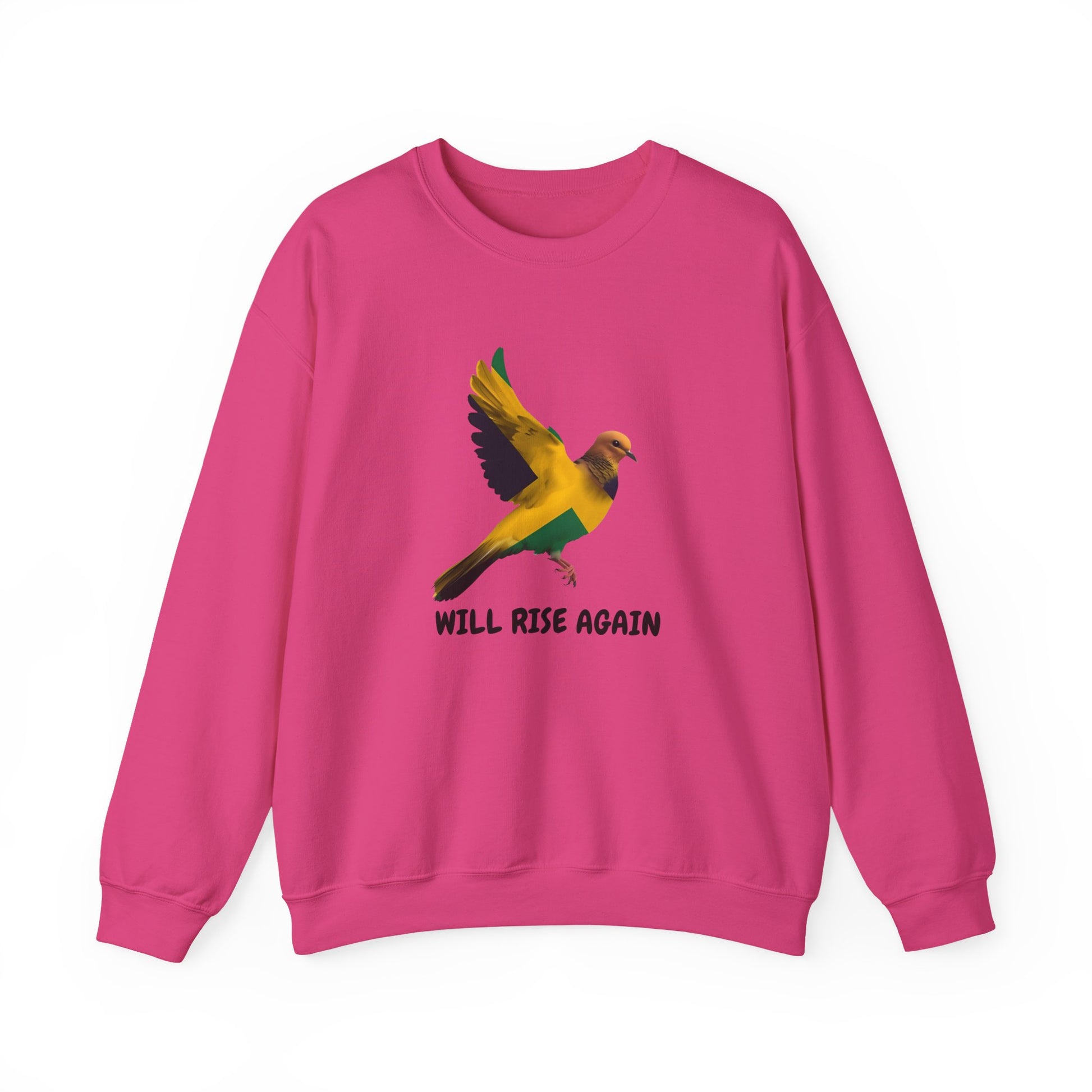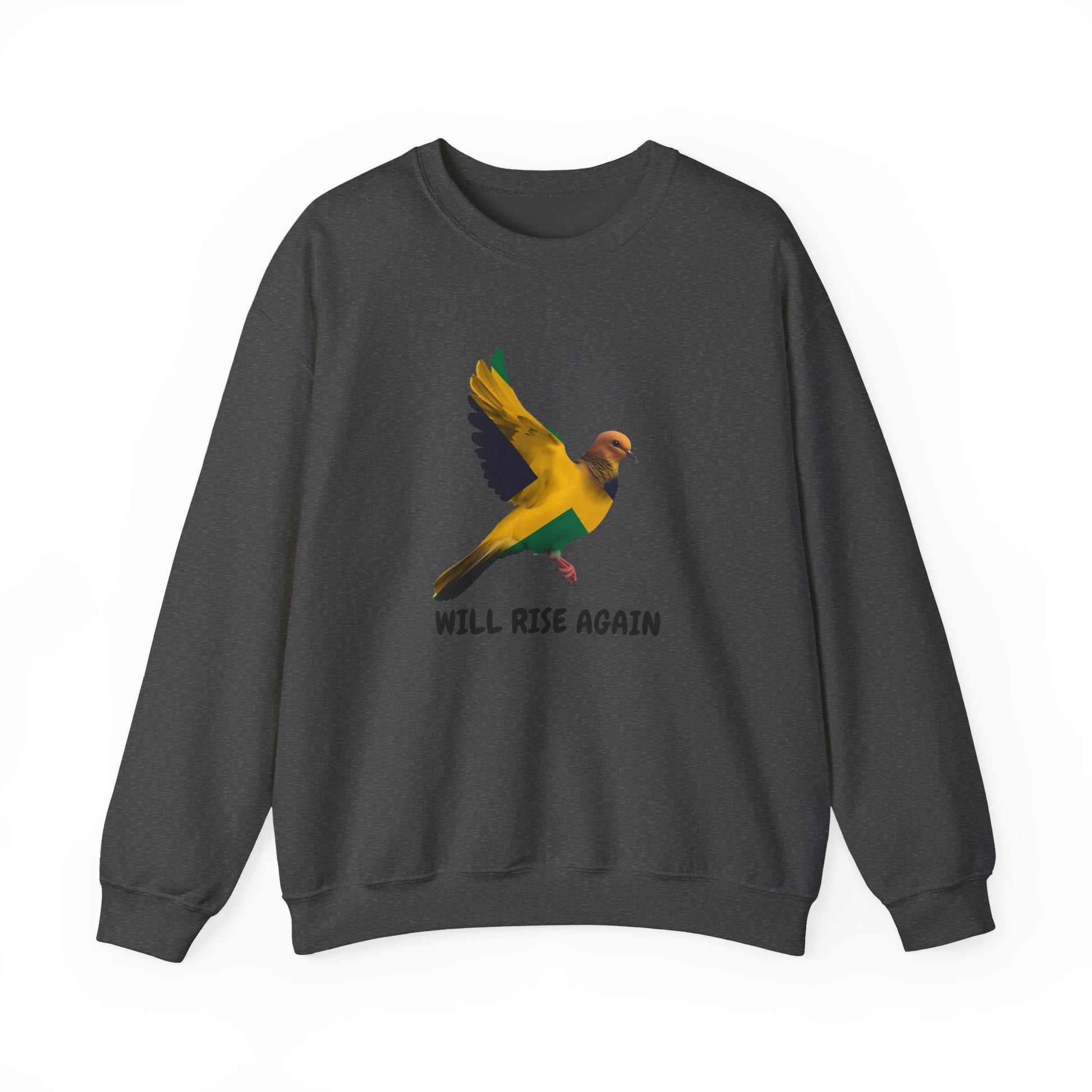 A soft, medium-weight crewneck sweatshirt that carries a quiet message of hope. The white, clean canvas highlights a single, colorful bird in mid-flight above the hand-lettered phrase “WILL RISE AGAIN.” The classic cut and ribbed collar create a familiar, cozy silhouette that layers easily over tees or under jackets. Thoughtfully built — tubular knit for a smooth finish, double-needle stitching for long wear, and OEKO-TEX certified dyes — it feels lived-in from the first wear while standing up to the wash. Embroidery or print accents (left chest, center chest, or wrists) are available for a personalized touch. Wear it on days you need a gentle reminder that change and recovery are possible.