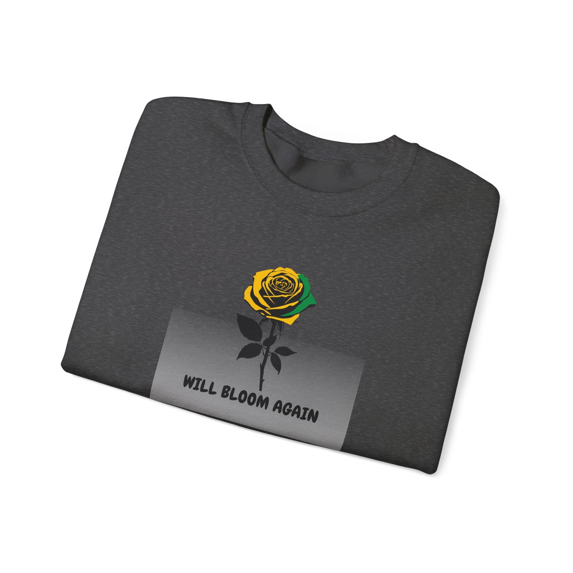 Soft, slightly oversized, and quietly confident — this crewneck carries a single image that says a lot. A hand-rendered yellow rose rests above the understated line “WILL BLOOM AGAIN,” printed with a soft-edged, slightly faded box that gives the design a lived-in, hopeful feel. Wear it on slow mornings with coffee or on nights walking under city lights. The medium-heavy cotton blend holds shape and warmth without weight, while the classic crew neck and ribbed cuffs keep the silhouette clean and familiar. It’s for anyone who’s moving through a rough season and wants a gentle reminder that growth is possible — subtle, wearable, and honest.