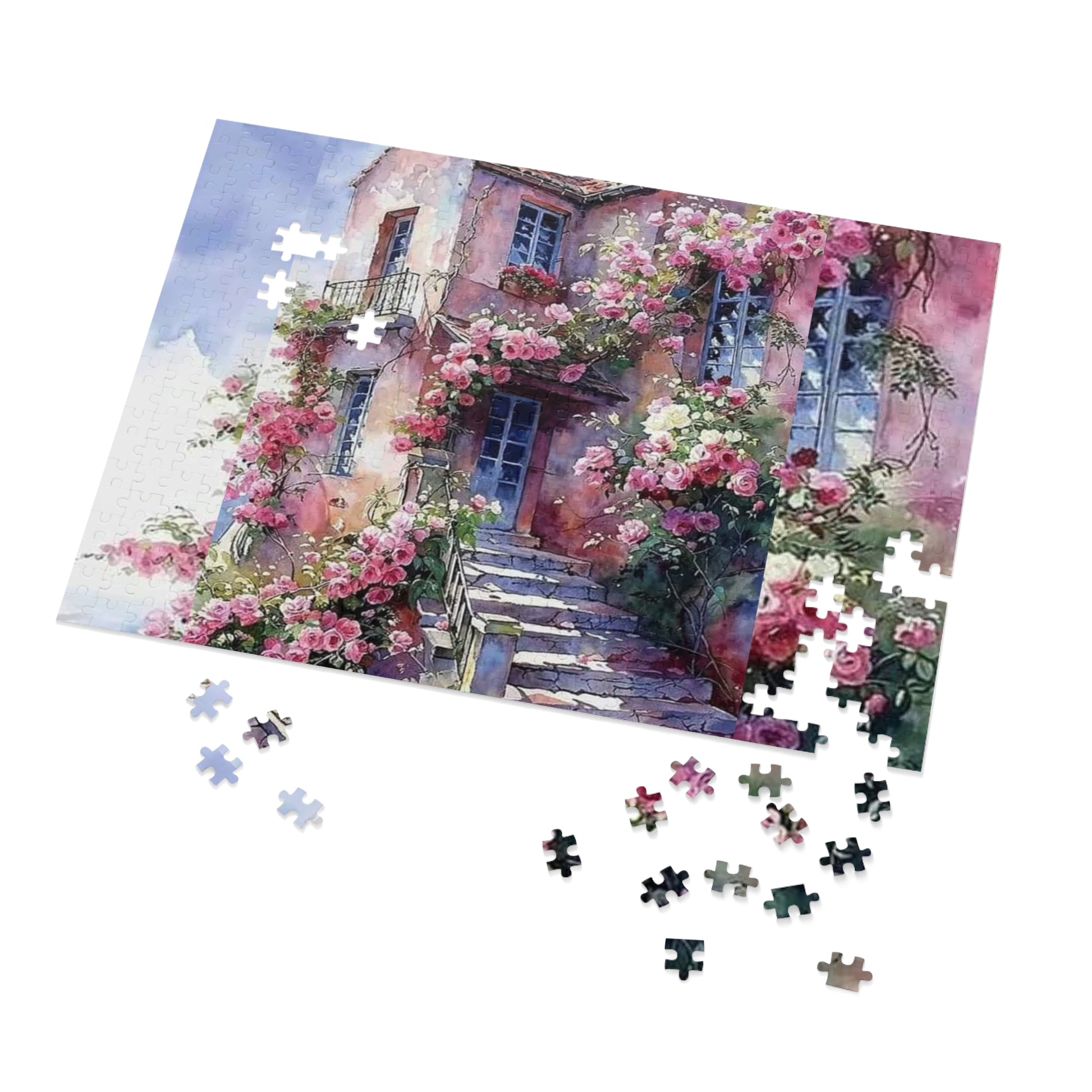A floral jigsaw puzzle that invites slow, joyful afternoons assembling a sunlit garden facade. Soft watercolor tones and lush roses pull you into a quiet courtyard — each glossy piece snaps together precisely on sturdy chipboard, revealing the finished image on both the box and the included white metal tin. The tin keeps loose pieces safe and makes the puzzle easy to store between sessions. Choose from a range of piece counts to match your experience level, from a breezy 500 piece to a challenging 1000-piece marathon. This puzzle suits anyone who loves meditative crafts, cottagecore art, and the calming ritual of building a scene piece by piece.