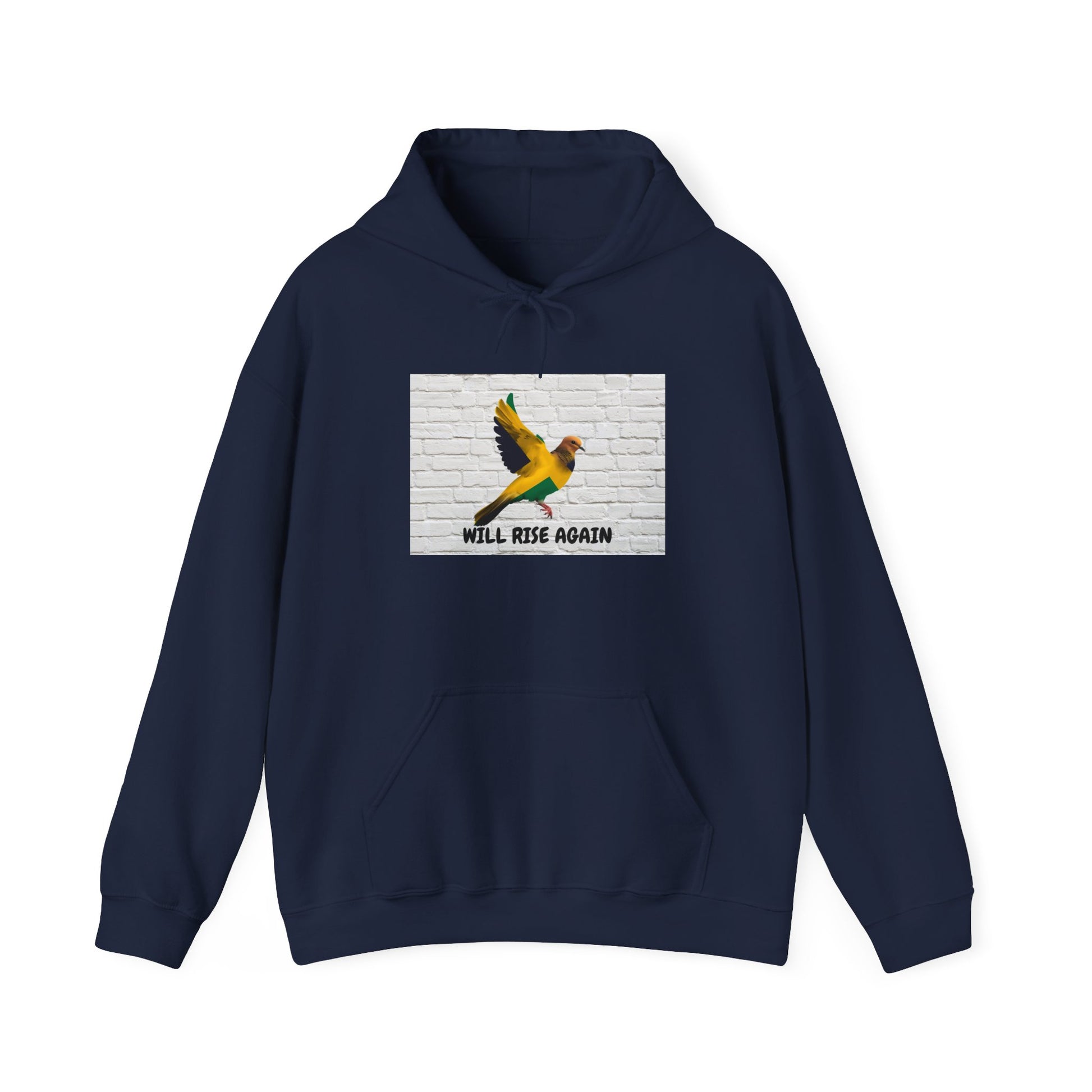 This hoodie carries a quiet, hopeful voice. A vibrant bird soars across a subtle brick backdrop, the words “WILL RISE AGAIN” anchoring the design. It’s soft against the skin and built for cooler mornings—pull it on when you need a calm, steady reminder that setbacks are temporary. The roomy kangaroo pocket and double-lined hood make it practical for walks, coffee runs, or curled-up afternoons with a book. Simple, resilient, and thoughtfully made, it slips easily into a pared-down wardrobe and becomes a go-to layer for reflective days and small personal victories.