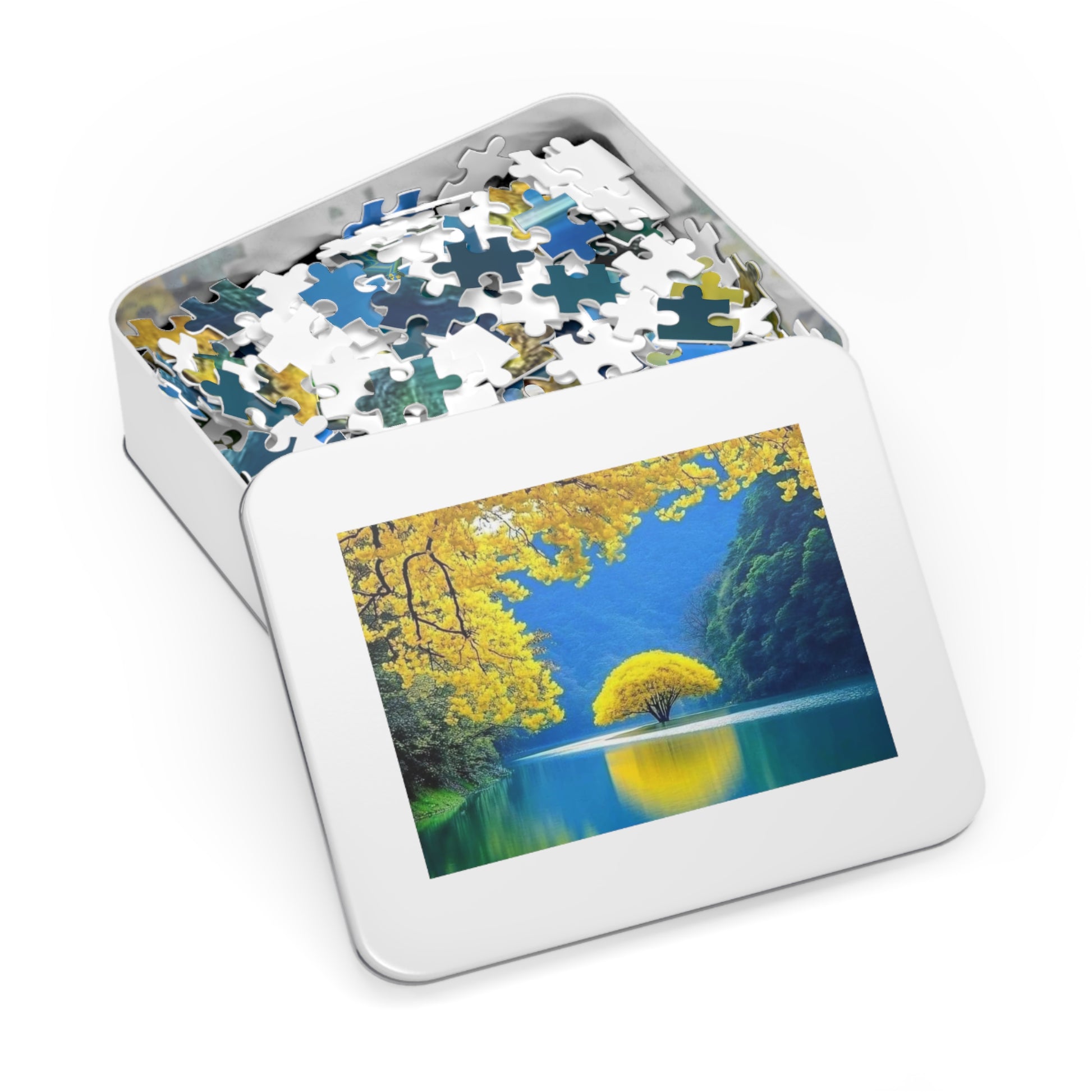 Scenic Yellow Tree Tranquil Lake Jigsaw Puzzle