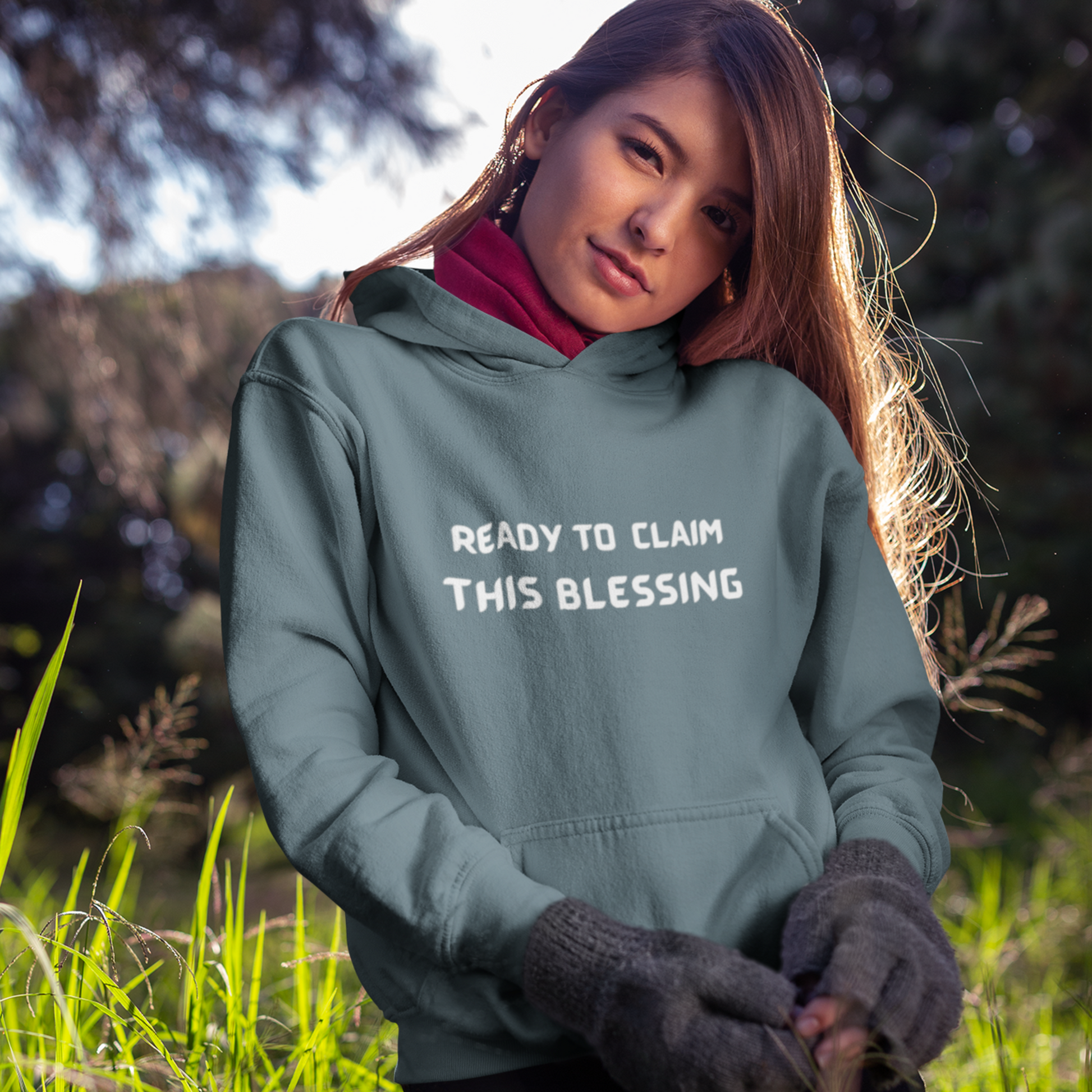 READY TO CLAIM THIS BLESSING UNISEX HOODED SWEATSHIRT WITH INSPIRATIONAL WORDS
