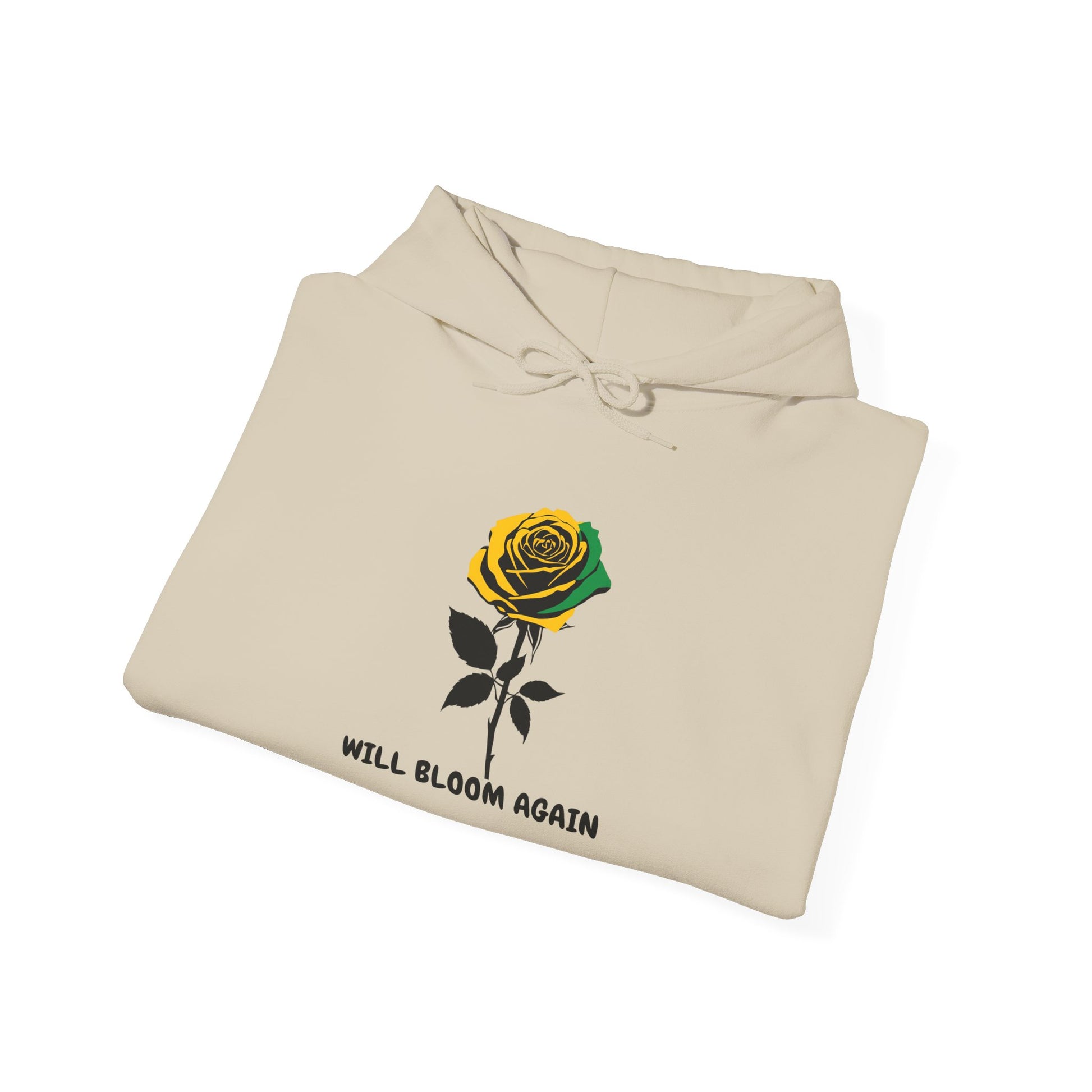 Will Bloom Again Jamaican Color Rose Hoodie — Inspirational Flower Comfort Pullover