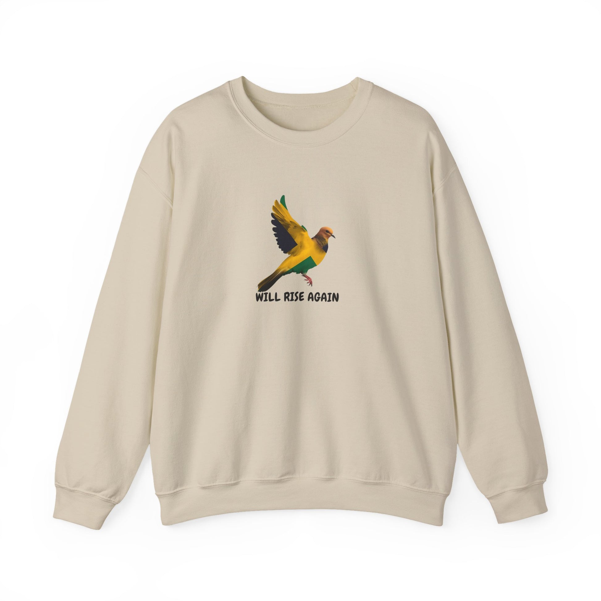 Will Rise Again Crewneck Sweatshirt — Inspirational Bird Graphic Jamaican colors
